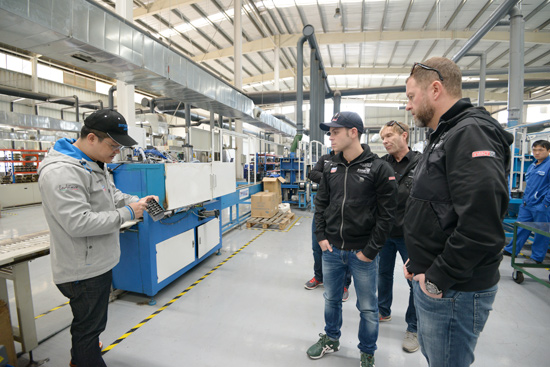 猛狮科技董事长陈乐伍(右一)为桑德罗一行进行技术讲解