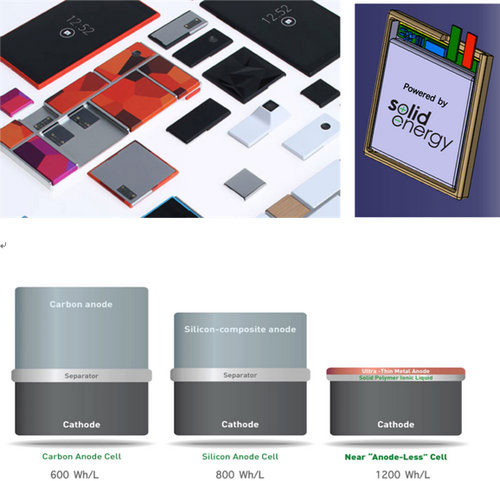 据麻省固体能源(SolidEnergy)目前宣布, 谷歌Project Ara模块手机正在与其合作,尝试使用该公司开发的高能量密度的“无负极”电池,以解决模块手机待机时间短的瓶颈问题。