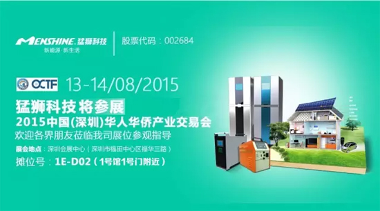 [摘要]猛狮科技将于8月13日-14日在深圳会展中心参展2015中国(深圳)华人华侨产业交易会,将展出光伏系统、储能系统等新能源产品。