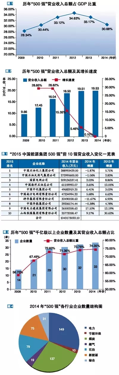 “2015中国能源集团500强”总营业收入同比增长0.10%,增幅较上年回落4.36个百分点,为历年增速最低。
