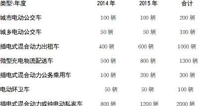 加快公共场所、居民小区的充电基础设施建设,引导个人购买插电式混合动力或纯电动乘用车。计划两年内新增插电式混合动力乘用车2000辆,其中2014年800辆、2015年1200辆。总投资3亿元,争取中央财政补贴5898万元,市财政补贴1769万元,剩余价款个人支付。