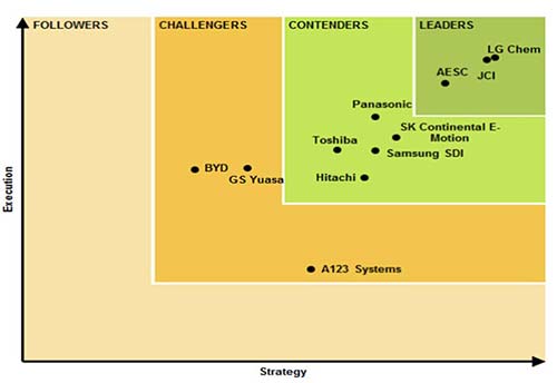 在美国咨询公司Navigant Research的全球十大锂离子电池供应商排行榜中,韩国LG化学排名第一,三星也榜上有名。Navigant Research认为,无论从技术、市场战略还是企业执行力上看,LG化学都是当之无愧的电池行业领军者。