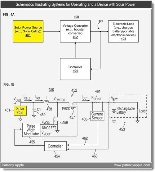 苹果最近一次有关太阳能的专利申请是在上个月完成的,公司申请了太阳能充电装置的电压转换器和控制器专利。该专利致力于算法和设备,可以对移动设备使用太阳能进行高效充电的方式进行监视和控制。据悉,苹果已经握有两项太阳能专利许可,另外五项太阳能专利已经提交申请。