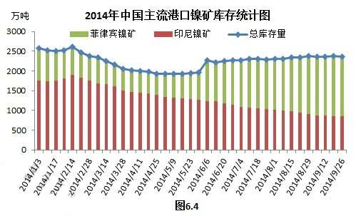 菲律宾镍矿进口量连增,国内主流港口镍矿库存自然也居于高位。国内主流港口镍矿库存最新统计是2380万吨,自7月中旬以来便居于2300万吨以上,较5月中旬的1921万吨已经增加了459万吨,增幅23.89%。其中菲律宾镍矿总量1506万吨,印尼镍矿总量845万吨,印尼镍矿虽逐渐减少,但菲律宾镍矿则由年初的830万吨增加至目前的1506万吨,增幅81.45%(图6.4)。