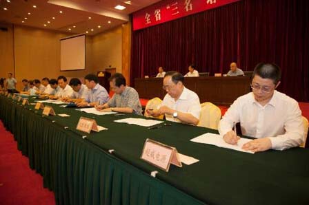 会上,周明明董事长上台签订了第一批“三名”培育试点企业责任书,并作为首批试点企业代表作了表态发言。他以“推进品牌建设 争创新能源国际化企业”为题,从实施科技创新,提升区域品牌价值、强化品牌建设,提升品牌美誉度、优化品牌管理,夯实品牌底蕴、加强国际合作,塑造国际品牌等四个方面,阐述超威将以品牌型龙头企业为发展目标,加快四大创新,不断整合公司产品、技术、管理、营销等优势,深化新能源行业电池技术研发,大力实施品牌战略,向全球新能源行业龙头企业的目标迈进。