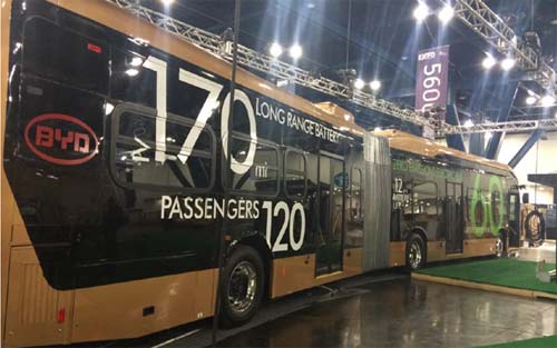 近日,比亚迪在2014年美国公共交通技术与设施展览会上推出了全球最大的电池电动车——“兰卡斯特”,“兰卡斯特”是一辆铰链式纯电动大巴,车身长18米,历经2年研发,单次充满电、满载情况下续航超270公里,可搭载120名乘客。