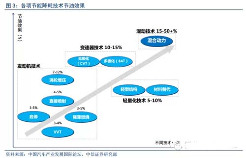 1)高性能发动机,例如涡轮增压汽油机有望实现7%-12%的燃料消耗;