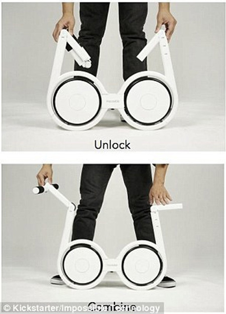 展开这辆碳纤维自行车需要4个步骤。先解锁,然后将车座和车把扭转到合适位置,接着将车身抬高到正确高度,最后把车锁置于合适位置。它的高度可以调节,有4个选择:2.1英尺、2.2英尺、2.4英尺和2.6英尺。