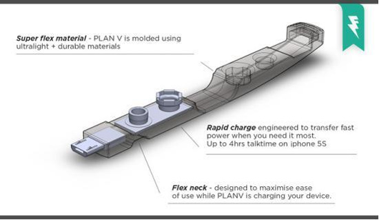 开发Plan V的澳大利亚公司Flintu表示,一个9V电池可为三星Galaxy S5或iPhone 5提供通话时长为4小时的电量。但Plan V暂时只有micro-USB版,而支持iPhone用的Lightning版则要等到筹集到目标资金后才会进行开发。