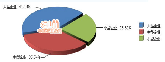 图5 2014年1~9月全国电池行业累计主营业务收入企业规模占比情况