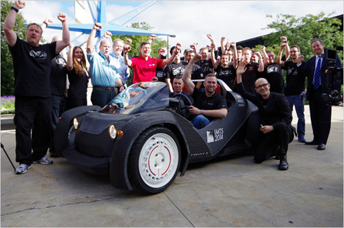 需要说明的是,Strati并不是世界上第一辆3D打印汽车,也许有人知道,没错,那就是于去年就声名全球的Urbee 2。这是一辆由设计公司KOR Ecologic、直接数字制造商RedEye On Demand以及3D打印制造商Stratsys合作打造的高燃油效率混合动力车。Urbee 2包含超过50个3D打印组件,制造用时2500个小时。