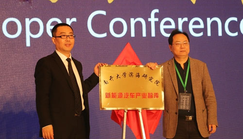 最后,南开大学滨海开发研究院与第一电动网联合倡议成立的新能源汽车产业智库举行了成立仪式。南开大学滨海开发研究院的刘刚教授表示,成立新能源汽车产业智库,是希望通过产学研结合的方式,为自主创新和创新国家建设提供自主支持,也是响应国家的号召。刘刚教授和第一电动网CEO庞义成共同上台揭牌。