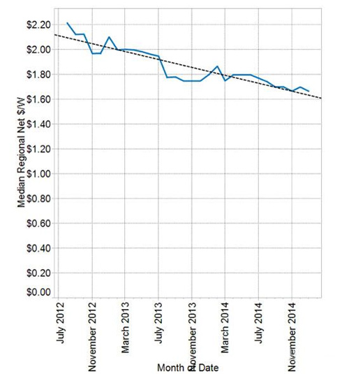 “整体而言,我预计2015年澳大利亚太阳能市场规模远超于2014年。” SunWiz分析师Warwick Johnston在年度报告中总结称,“随着数个旗舰性项目(包含102兆瓦的Nyngan光伏电站、70兆瓦的Moree光伏电站、13兆瓦的Mugga Lane光伏电站及7兆瓦的OneSun光伏电站)顺利交付,今年澳大利亚公共事业级部门规模有望刷新历史记录。”
