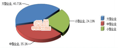 从企业规模看,小型企业增长速度加快。大型企业完成累计主营业务收入占40.71%,同比增长2.2%;中型企业完成累计主营业务收入占35.1%,同比增长1.71%;小型企业完成累计主营业务收入占24.19%,同比增长12.55%。