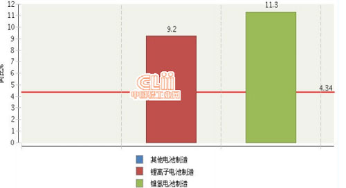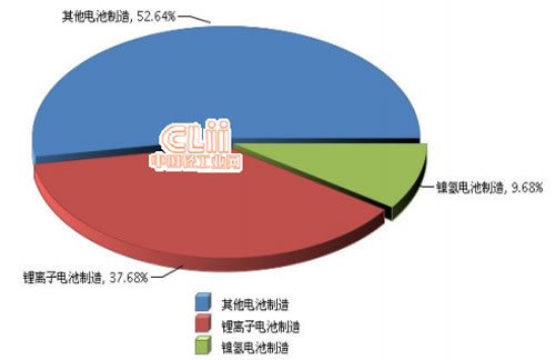 2014年1~11月,其他电池制造完成累计主营业务收入占52.64%,同比增长0%;锂离子电池制造完成累计主营业务收入占37.68%,同比增长9.21%;镍氢电池制造完成累计主营业务收入占9.68%,同比增长11.32%。