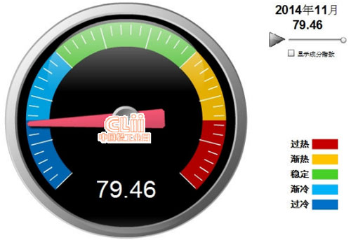 2014年11月中轻电池景气指数再入“过冷”提示区,电池景气指数为79.46,较10月的80.09有所下降。