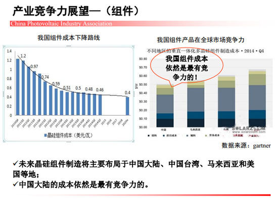 ]近期,中国光伏行业协会秘书长王勃华在“光伏行业发展与投资分析——2014年回顾与2015年展望”研讨会上总结了去年我国光伏制造端以及应用市场的整体情况。