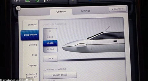在詹姆斯·邦德模式下,在仪表盘通常显示Model S电动汽车图像的区域,将被007电影《海底城》中由莲花汽车改造成的电动潜水车的图像所取代。