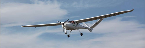 E-430采用近似动力滑翔机的外形设计,高度流线形低阻机身使飞行能耗降到最低。机头安装的动力系统主要包括电动机和三叶复合材料螺旋桨。机翼为独特的V形尾翼和悬臂式上单翼,翼型和机翼形状的设计具有高气动性能,全机滑翔比达到25∶1。起落架为典型板簧式结构,整机采用全复合材料,具有结构简单、效率高、重量轻等优点。E-430飞机飞行不消耗燃油,因此几乎不产生任何污染。螺旋桨驱动电机上仅有2个运动部件(轴承),因此可靠性和维修性非常好,优化设计后的螺旋桨使得飞机噪声低、振动轻,维修保障的工作量也很小。飞机的经济性突出,例如充电时间3小时的费用仅为5美元。E-430飞行时间可达到1.5~3小时(根据构型变化而不同),基本能满足用户的航程要求。目前,飞机已通过了德国适航认证,为了进一步促进其在国际市场上的销售,昊翔公司积极与美国联邦航空局(FAA)和美国试验和材料协会(ASTM)合作,推动两者出台电动力轻型运动飞机的适航标准。