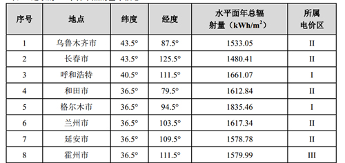 如上表所示,样本点兼顾了我国太阳能资源最好地区和最差地区,并主要集中在资源中等的地区。
