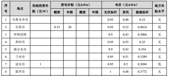 从上表可以看出,18 个样本点中,高补贴(折合度电补贴>0.3元/kWh )的有4 个点,低补贴(折合度电补贴<0.3 元/kWh )的有5 个点,无补贴的有 9 个点。
