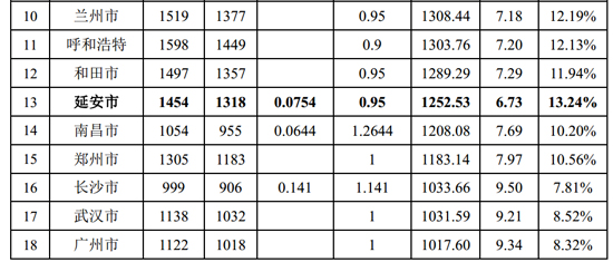 18 个样本点收益指数的平均值为 1315,将它们落到地图上,如下所示。