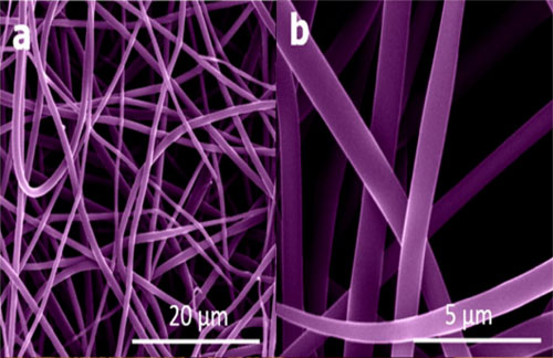 研究人员在一个旋转的滚筒和喷出原硅酸四乙酯(TOES) 溶液的喷嘴之间施加高电压,从而产生纳米纤维。之后将纤维材料暴露于镁蒸气中,进而获得海绵状硅纤维结构。