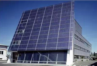 立面安装侧立面安装形式主要指在建筑物南墙、(针对北半球)东墙、西墙上安装光伏组件的方式。对于多、高层建筑来说,墙体是与太阳光接触面积最大的外表面,光伏幕墙垂直光伏幕墙是使用的较为普遍的一种应用形式。根据设计需要,可以用透明、半透明和普通的透明玻璃结合使用,创造出不同的建筑立面和室内光影效果。双层光伏幕墙、点支式光伏幕墙和单元式光伏幕墙是目前光伏幕墙安装中比较普遍的形式。目前用于幕墙安装的组件成本较高,光伏系统工程进度受建筑总体进度制约,并且由于光伏阵列偏离最佳安装角度,输出功率偏低。除了光伏玻璃幕墙以外,光伏外墙、光伏遮阳蓬等也可以进行建筑立面安装。