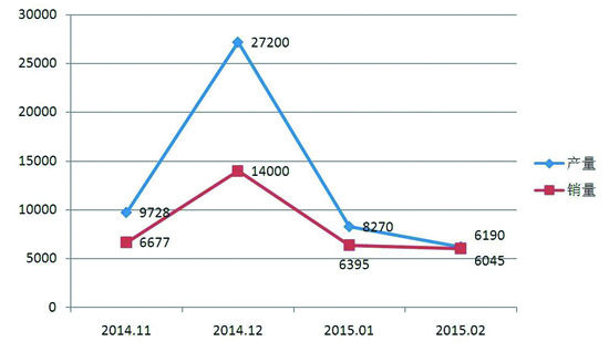 而根据董扬个人提出的估算,2015年1月份的实际产销量应该在1万辆左右。而如果是这样的话,2015年2月份产销量仅仅维持在6000辆水平的状况,也就更加凸显了新能源汽车补贴退坡机制所产生的影响。