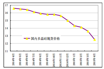 图1 2014年4月-2015年4月国内多晶硅现货报价单位:万元/吨 来源:硅业分会