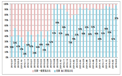 图7 2015年3月份国别按加工贸易方式进口占比 数据来源:海关