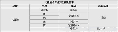 除比亚迪唐外,首款MPV“商”和紧凑SUV“宋”将在二季度发布上市、小型SUV“元”会在三季度上市。后续还将推出包括SUV、MPV在内的多款新能源车型。比亚迪董事长王传福表示:“目前国内的传统能源车领域发展已被合资品牌抢占,但在新能源领域我们掌握着绝对的主动权,我们将着力发展新能源SUV和MPV车型,打造双模车为重点。”