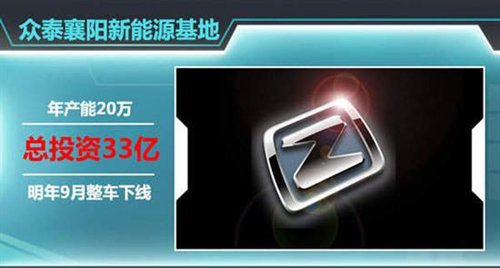 众泰汽车在传统能源车领域只能排在第二梯队,然而凭借云100的热销,众泰挤进新能源车销量排行版的第二名。众泰汽车董事长吴建中在接受媒体采访时表示,众泰正大力发展新能源车型,计划未来将推出包括众泰Z500纯电动车和代号为B12和B15的插电式混合动力轿车。 除了再新产品上下功夫,众泰汽车不断扩大新能源车产能。日前,网通社从襄阳市政府了解到,众泰新能源汽车基地项目落户襄阳市,计划今年7月正式开工,明年9月该基地产品将正式下线。该项目计划总投资33亿元,建成后可年产20万辆新能源汽车。