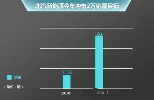2014年3月份北汽第一款纯电动轿车E150EV面向私人市场上市,并以全年5510辆的销量夺得纯电动乘用车销量冠军。今年一季度北汽E系电动车累计销售1950辆,帮助北汽跻身新能源车销量第四名。目前,北汽新能源已拥有基于北汽E系列的E150EV、EV200,基于绅宝D70的ES210以及三款新能源产品。北汽新能源总经理郑刚表示:未来两年内北汽新能源将会推出8款新车。其中,2015年规划内推出的车型代号为C10IB、C50EB、C71GB,分别为微型车、紧凑型和一款中型车。今年北汽新能源的目标是实现2万辆以上销量。