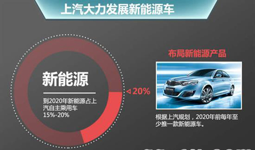 上汽近几年投入大量人力物力发展新能源车,目前旗下已经有荣威550、荣威e50等多款新能源产品。今年一季度上汽累计销售新能源车1454辆,这其中荣威550贡献绝的大部分销量。根据上汽规划,到2020年,旗下生产的乘用车平均燃料消耗量降至5.0升/百公里”的目标。上汽集团副总裁、上汽乘用车总经理王晓秋表示,如果仅靠传统汽车不一定能够做到,上汽是三条路线并行,如果靠PLUG-IN(插电式混动)的强混系统,可以做到5升以下,未来上汽新能源汽车的销量占比要达到15%至20%。