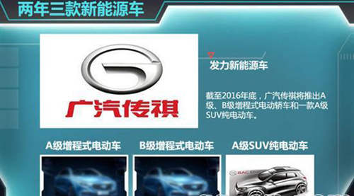 在9大品牌中广汽传祺是较晚进入新能源车市场的品牌。在去年的广州车展,广汽传祺GA5 REV增程式电动车正式上市。今年一季度,该车累计销售255辆。广汽集团总经理曾庆洪表示,预计在2015年底至2016年底,广汽自主品牌更具市场竞争力的A级和B级增程式电动轿车、A级SUV纯电动车将逐步投放市场。根据广汽传祺计划,在2020年前新能源车年销量将达10万辆。