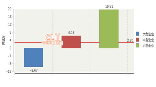 从企业规模来看,中型企业利润增长速度最快,同比增长75.12%。
