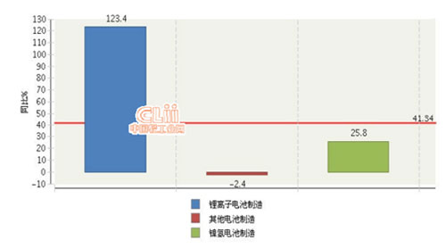 2015年1-2月全国电池行业累计利润总额行业小类同比增长情况