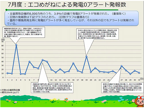从2014年7月检测到发电停止的单日数量来看,在大面积发生雷雨和暴风雨的日子里停止发电的情况较多(图2)。