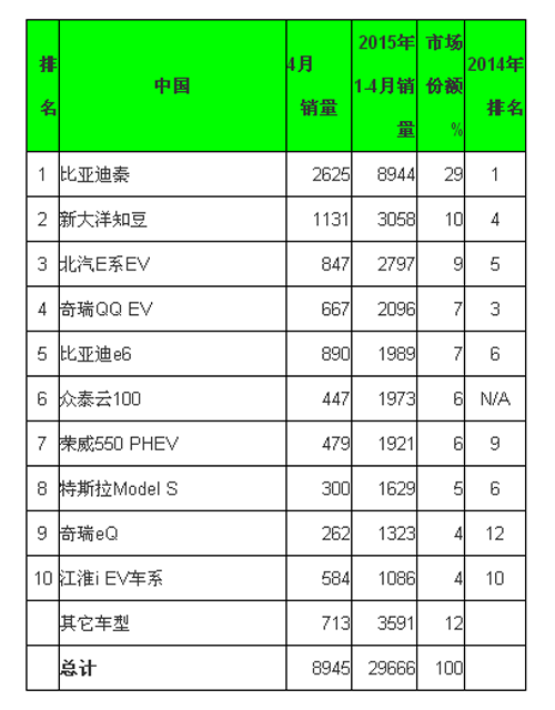 4月份,中国电动乘用车销量接近9000辆,较去年同期的3800辆加速增长,市场份额已经达到0.4%以上。