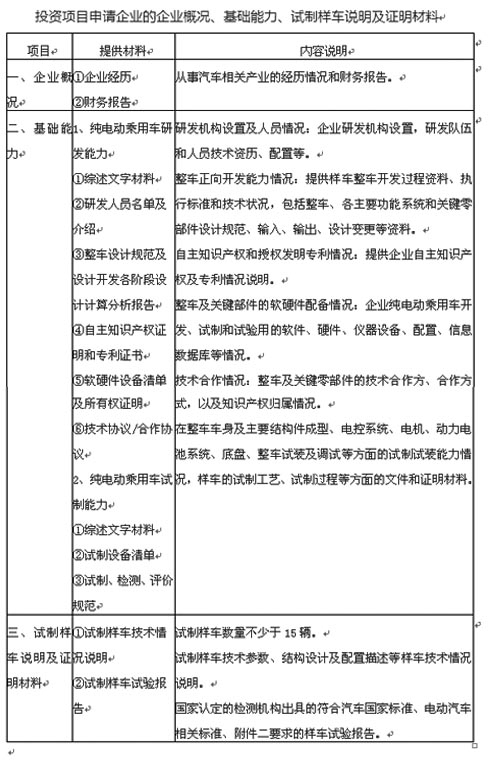 一、投资项目申请企业的企业概况、基础能力、试制样车说明及证明材料