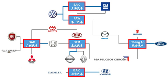 图2 由六大集团主导的合资谱系