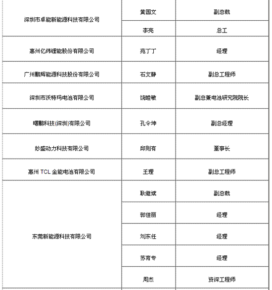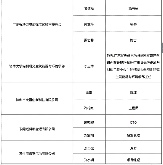 以下是广东省动力电池标准化技术委员会年会出席名单(第一批):